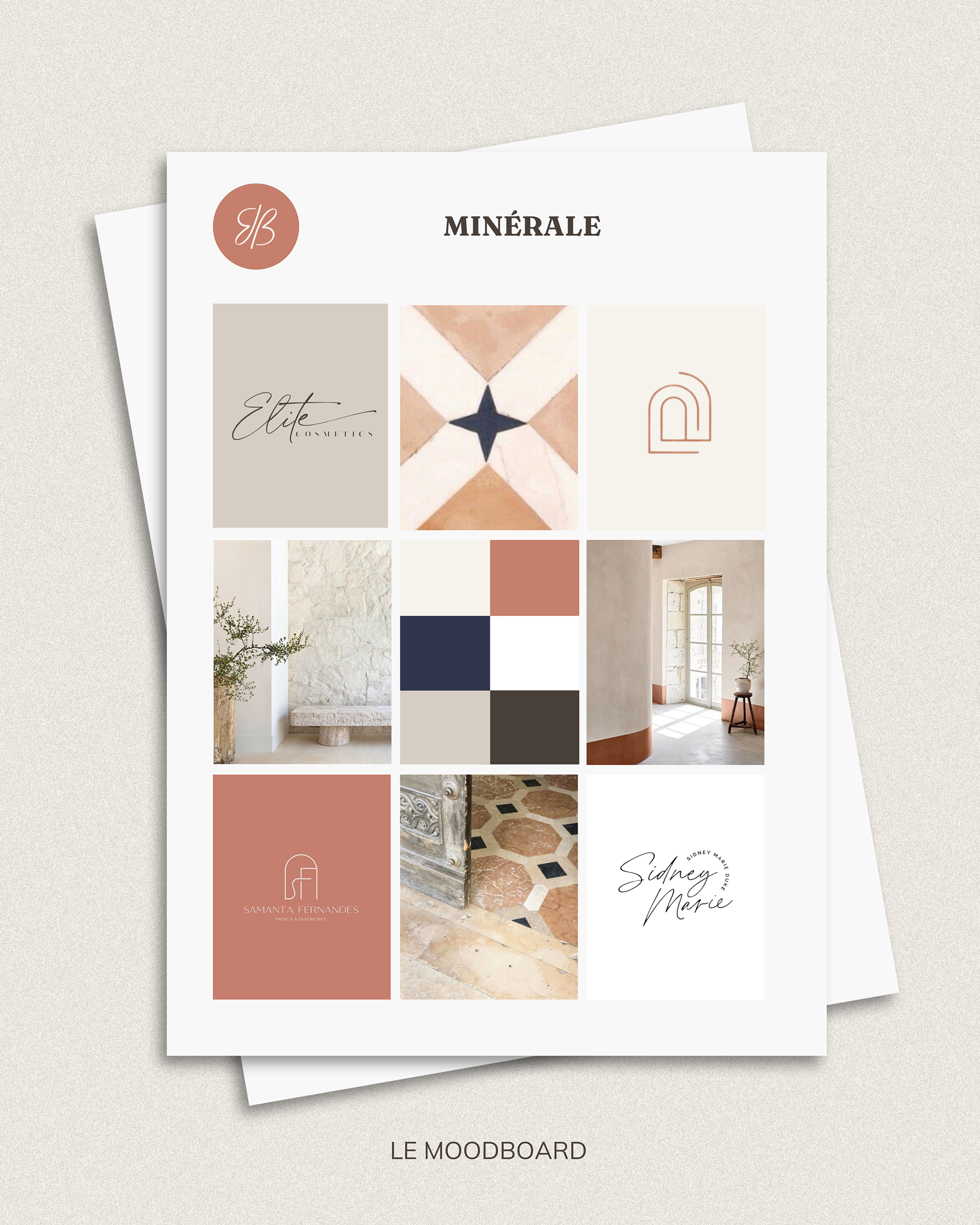 Une palette de teintes naturelles et minérales, ponctuée de touches plus affirmées, apporte douceur, contraste et personnalité. Les typographies mêlent raffinement et lisibilité, tandis que les éléments graphiques, organiques et épurés, renforcent la cohérence et le côté authentique de l'identité.