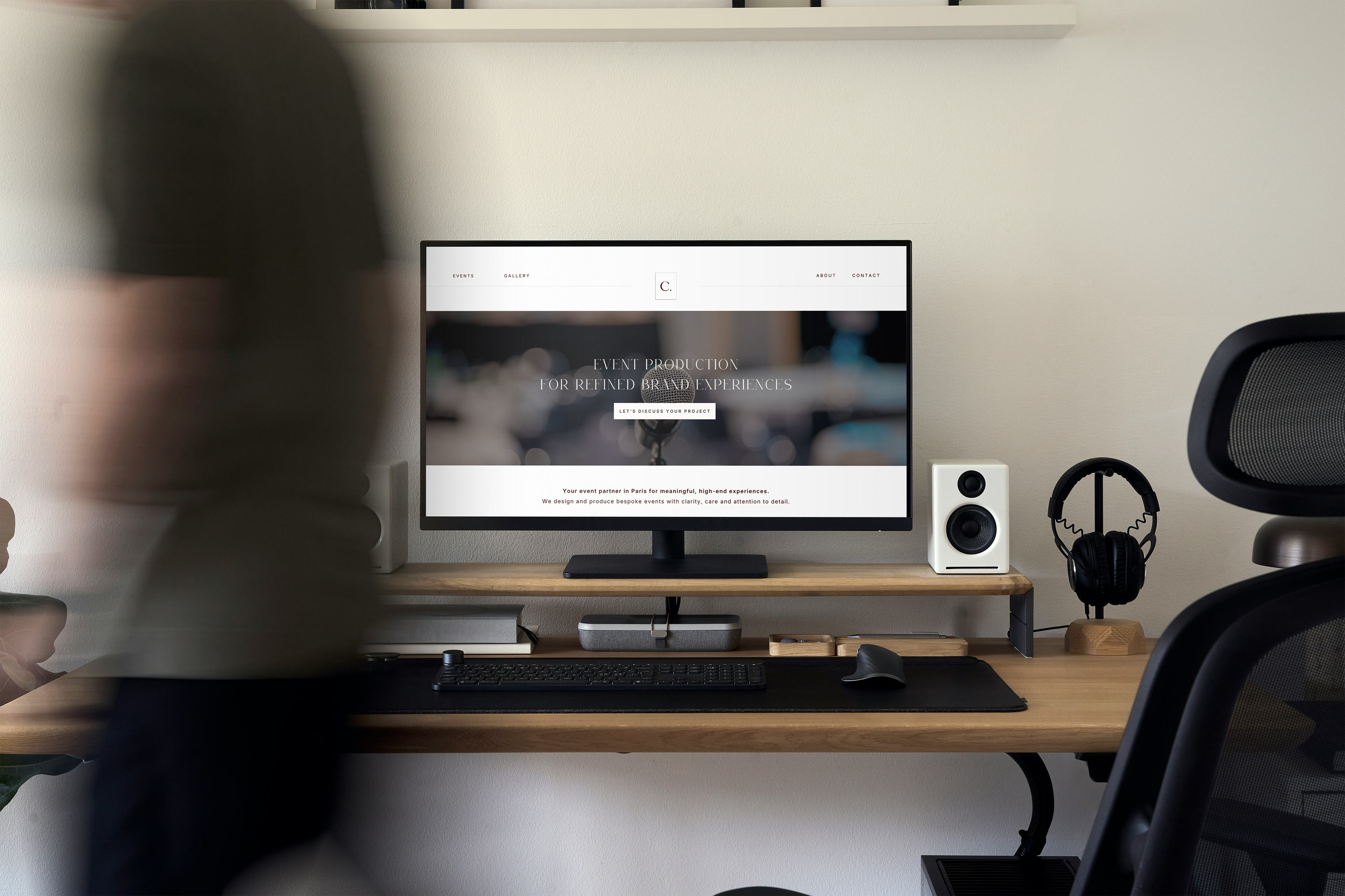 Laura accompagne depuis plusieurs années des entreprises dans la direction et la production de projets événementiels à forts enjeux stratégiques. L’enjeu de cette identité visuelle était de traduire visuellement une posture rare : à la fois exigeante, structurée et profondément humaine.