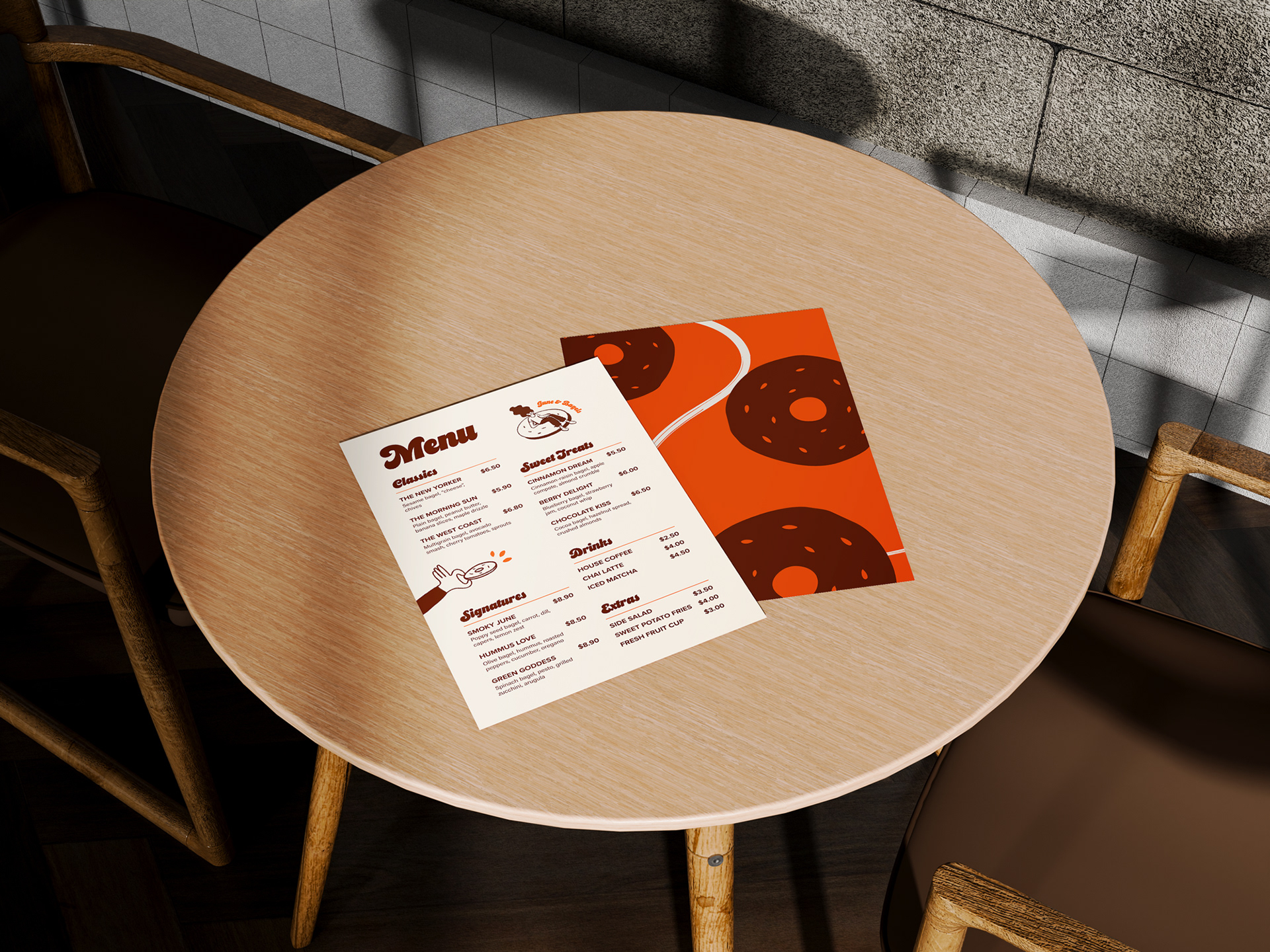 Créer une identité visuelle forte et cohérente pour un bagelshop à l’univers rétro et chaleureux.